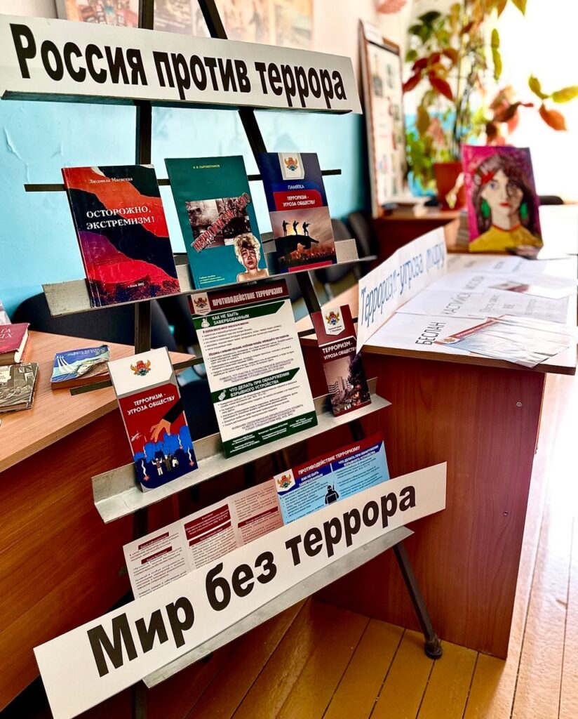 Организована тематическая выставка-инструктаж по поведению при угрозе терроризма, с которой ознакомили участников мероприятия.